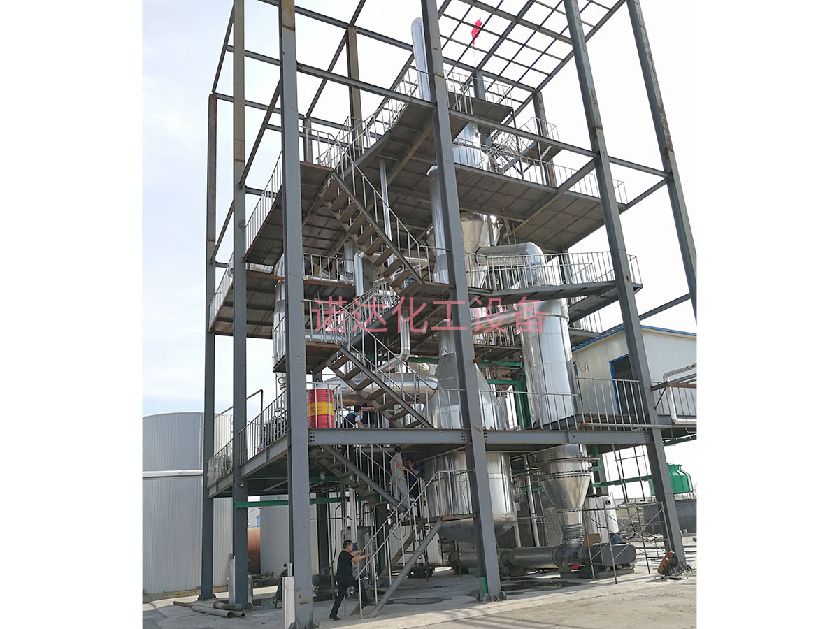 淀粉糖蒸发器蒸发温度低,加入蒸汽热压泵后部分二次蒸汽经喷射式热压泵重新吸入一效蒸发器壳程或首两个效的蒸发器壳程,热量得到充分利用,料液受热温和,适用于热敏性物料的浓缩。 蒸发器顶部喷淋进料或通过多次溢流布膜装置,确保料液在蒸发器膜管内均匀分布,形成膜状,大大提高传热系数,增加蒸发率,可防止“干壁" 现象。